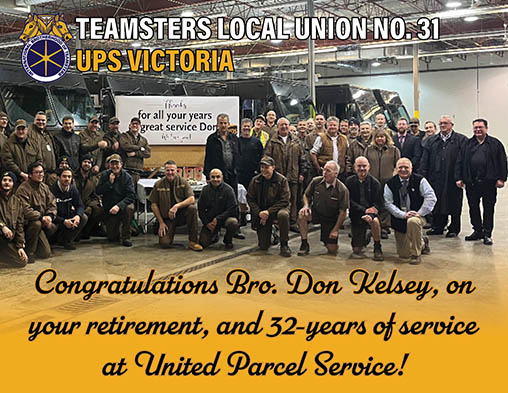 - Congratulations Bro. Don Kelsey on Retirement from UPS