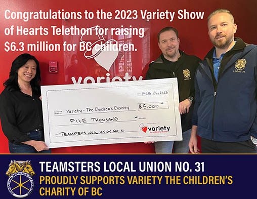 - Teamsters Local 31 Donates $5,000 to Variety the Children's Charity of BC