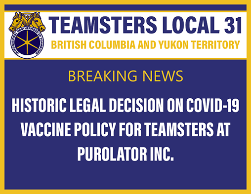 - Historic Legal Decision on COVID-19 Vaccine Policy for Teamsters at Purolator Inc.