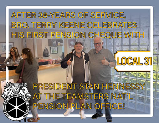 - Bro. Terry Keene Celebrates 38-Years of Service and His First Pension Cheque with President Stan Hennessy